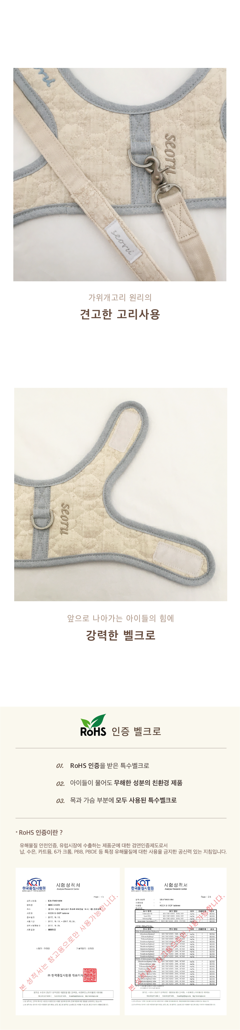 겉감에는 통기성이 매우 좋고 부드러운 거즈 원단을, 안감에는 린넨과 면이 혼방되어 통기성이 좋으며 세탁 후에도 변형이 적은 원단을 골라 사용하였습니다. 또한 로하스 인증을 받은 튼튼한 벨크로를 사용하여 아이들의 나가는 힘에 뜯기지 않는 강력한 견고함을 더해 안전을 최우선으로 생각했습니다.