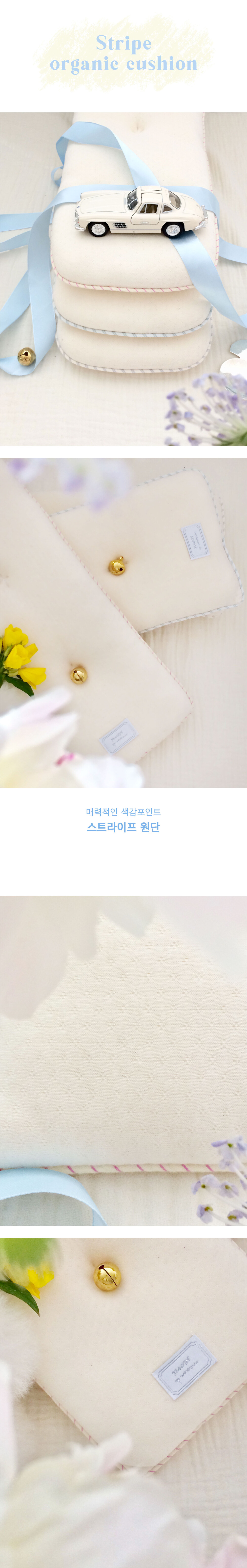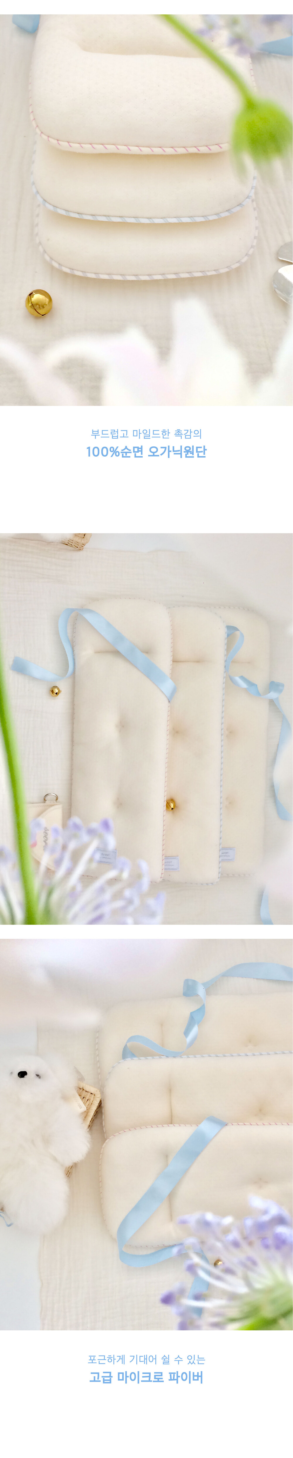 포근하고 부드러운 감촉이 느껴지는 organic 베루백 쿠션입니다. 오가닉 베루백 쿠션은 친환경 공법으로 제작된 오가닉 유아용 원단을 사용하여 아이들이 얼굴을 맞대고 쉴 때에도 보드라움을 느낄 수 있도록 제작하였으며 내부는 micro fiber100%로 충전해 아이들이 모찌떡같은 쫀득함을 느끼며 머무를 수 있습니다. 또한 촘촘하게 짜여진 세밀하고 작은 꽃무늬 펀칭조직은 쿠션 내부의 공기순환을 도와 통기성에 매우 좋습니다. 다양한 컬러의 파이핑 디테일로 제작된 오가닉 베루백 쿠션은 스트라이프(pink, mint, blue)와 솔리드(blue, lemon cream) 5가지의 컬러스타일로 골라보실 수 있습니다.