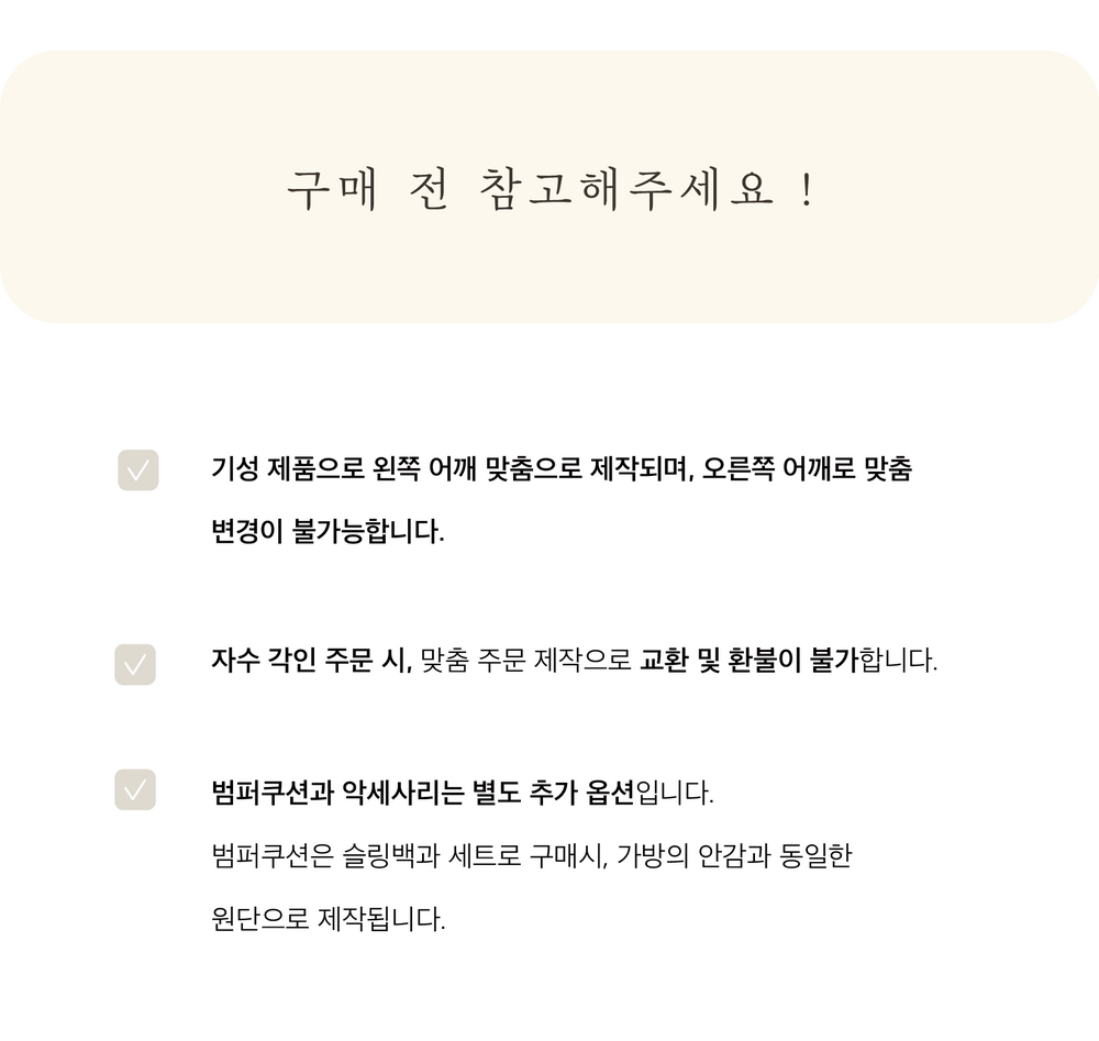 ✔︎ 세트구성 : 슬링백 단품 + 범퍼쿠션