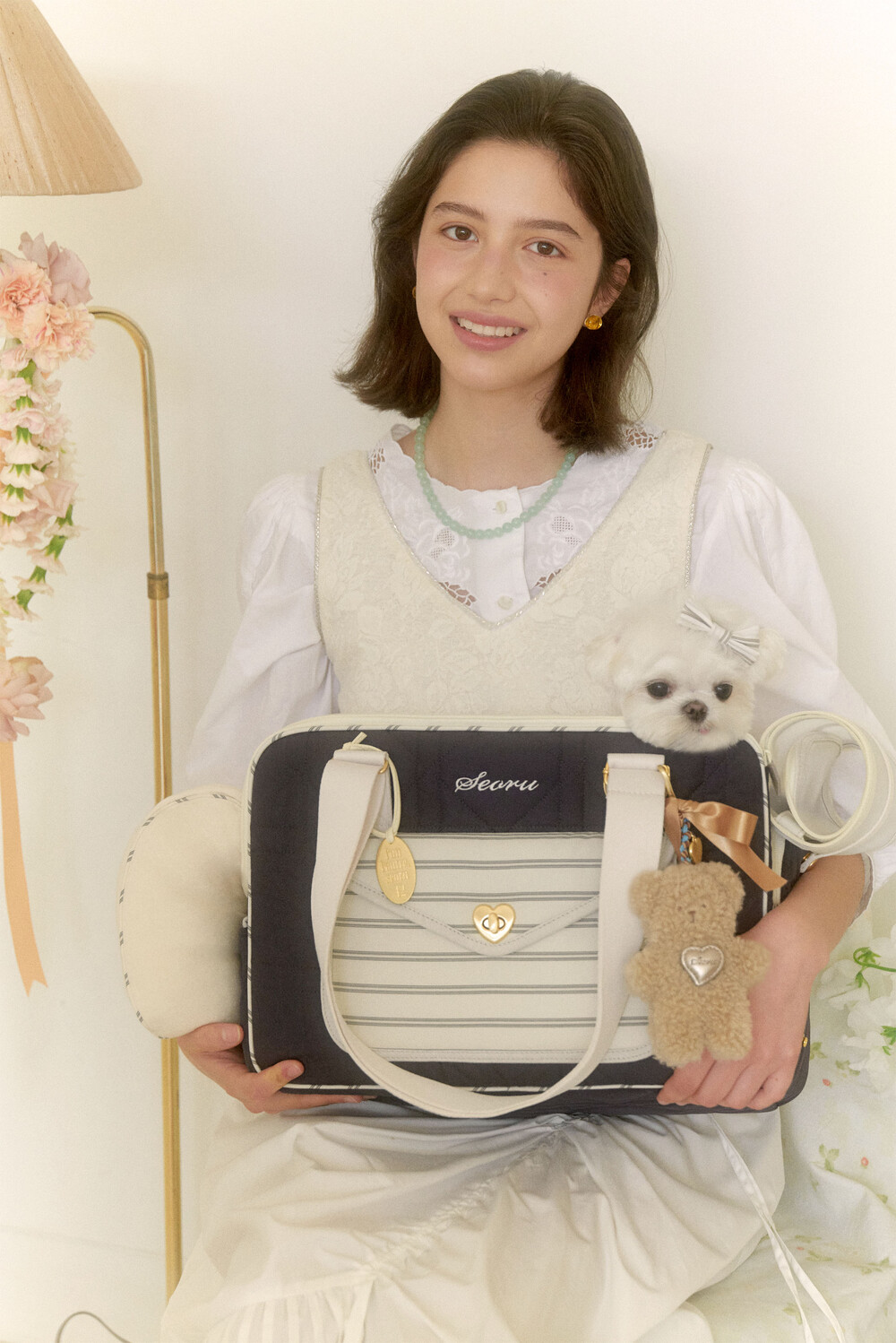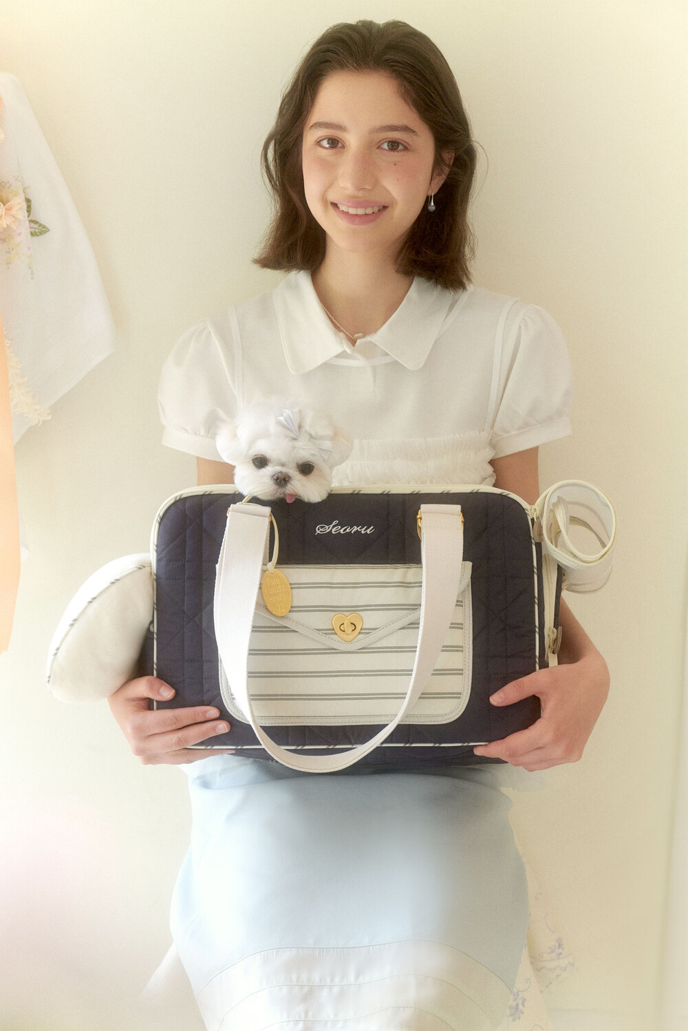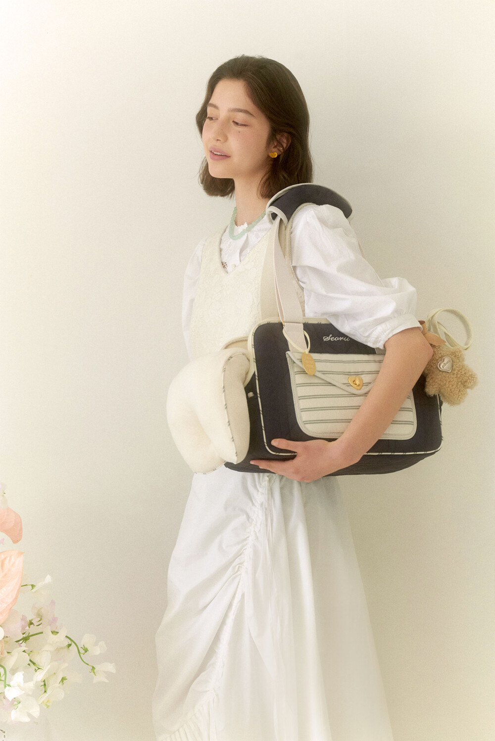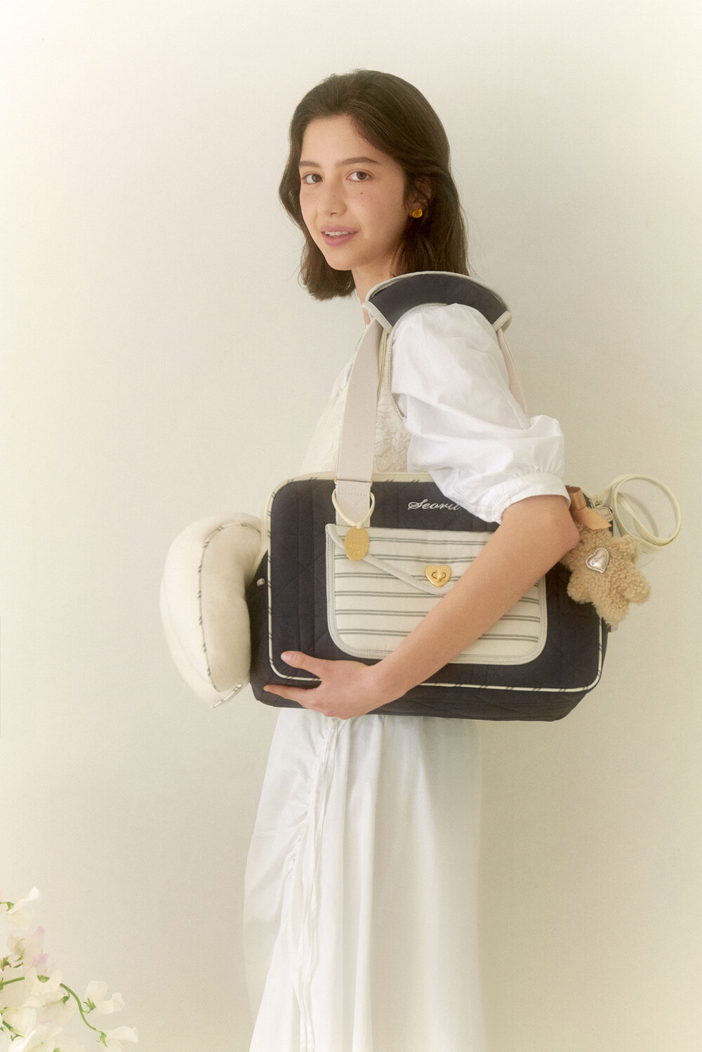 은은한 결이 느껴지는 샤틴골드의 하트잠금장식이 멋진 하우스 발롱백 (Haus Ballon bag )를 소개합니다. 다이아와 스트라이프가 반복되는 촘촘한 스티치로 세련된 누빔을 사용한 하우스 발롱백은, 가방 전체에 고급솜을 사용하여 오랜 시간 사용하여도 솜이 잘 꺼지지 않고 견고함을 느끼실 수 있는 것이 특징입니다. 또한 보다 넓어진 공간감에 단단하지만 폭신한 볼륨감의 벽면으로 아이들이 기대어 머물기 좋아하는 애착공간이 되어주며, 보호자분들의 체형과 상황에 따라 3가지 (토트, 숄더, 크로스) 방식으로 스트랩을 조절할 수 있어 활용성이 좋습니다.