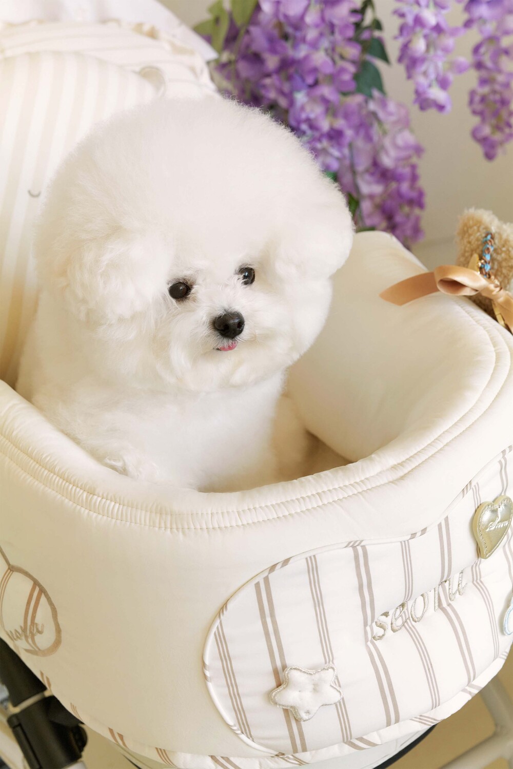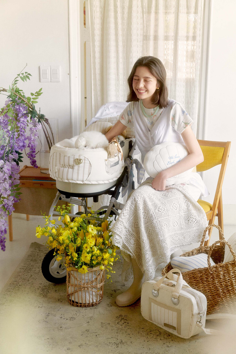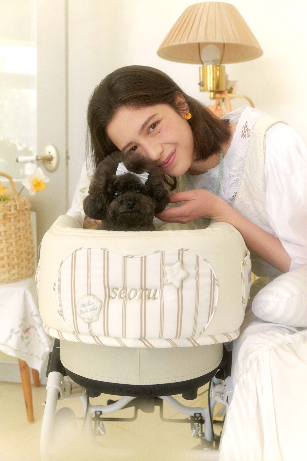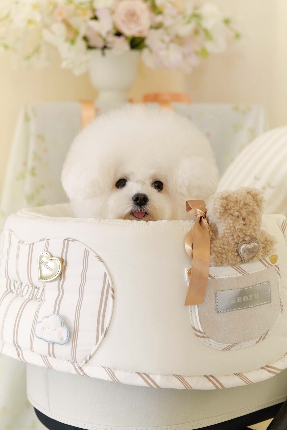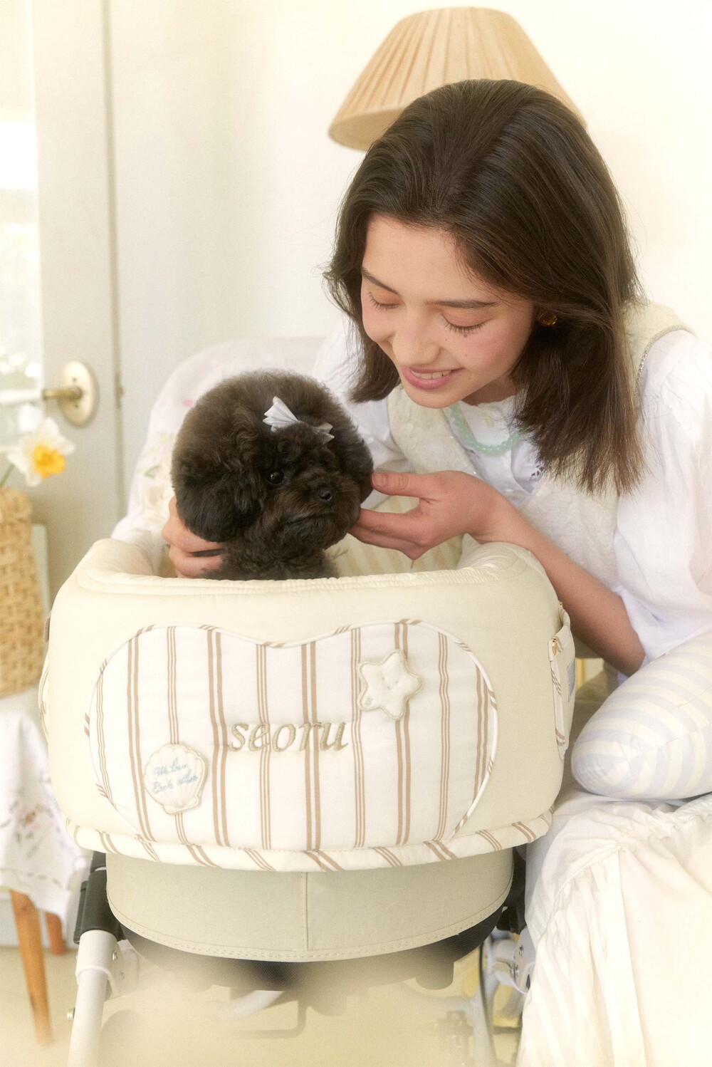 Seoru sweet home! 세심한 수작업으로 완성한 이곳저곳 멋스러운 디테일이 돋보이는, 서루의 하우스 버기 가드(House Buggy Guard)입니다. 서루의 하우스 버기가드는 아이들이 유모차 내부에 머무는 시간이 기분 좋은 외출경험이 될 수 있도록, 몸이 닿는 부분에는 부드러운 촉감을 위한 고밀도 원단을 사용하고, 하트쉐입을 채운 포인트원단에는 KUWAMURA사와 ICHIMEN사의 고급 스트라이프 패브릭을 사용했습니다. 또한 내부에는 여러 번 샘플링을 통해 선택한 보강재를 레이어링 하여 아이들이 오랜 시간 머물기 좋게끔 견고한 만듦새로 완성되었습니다.