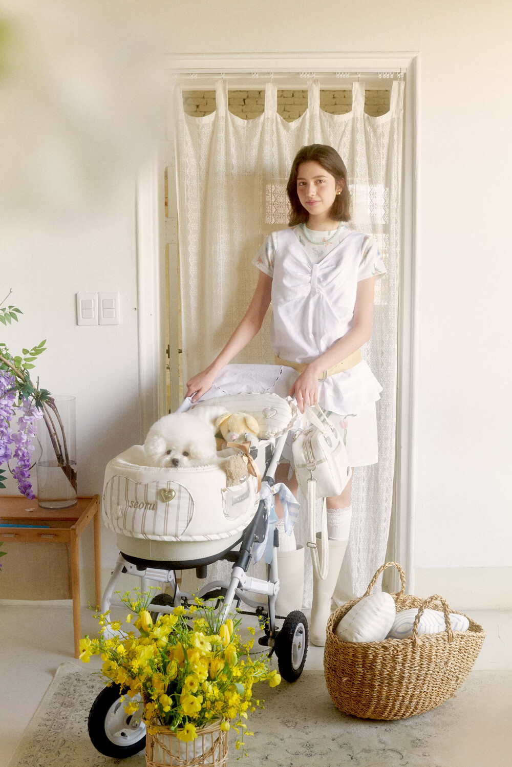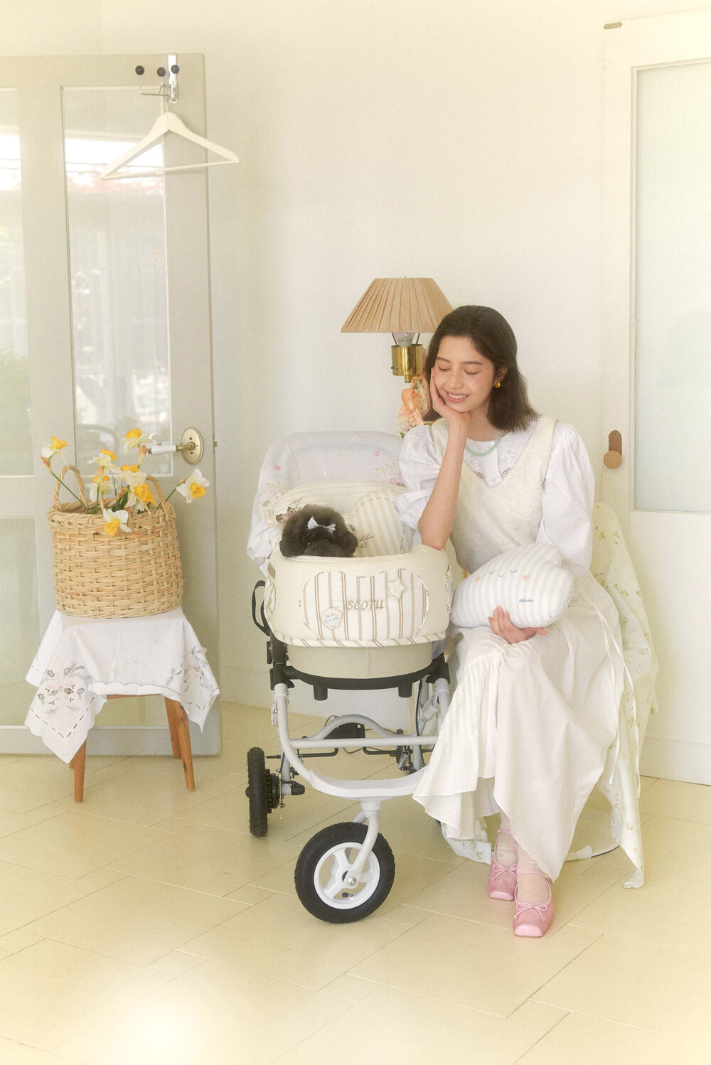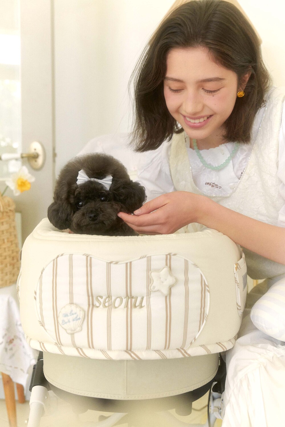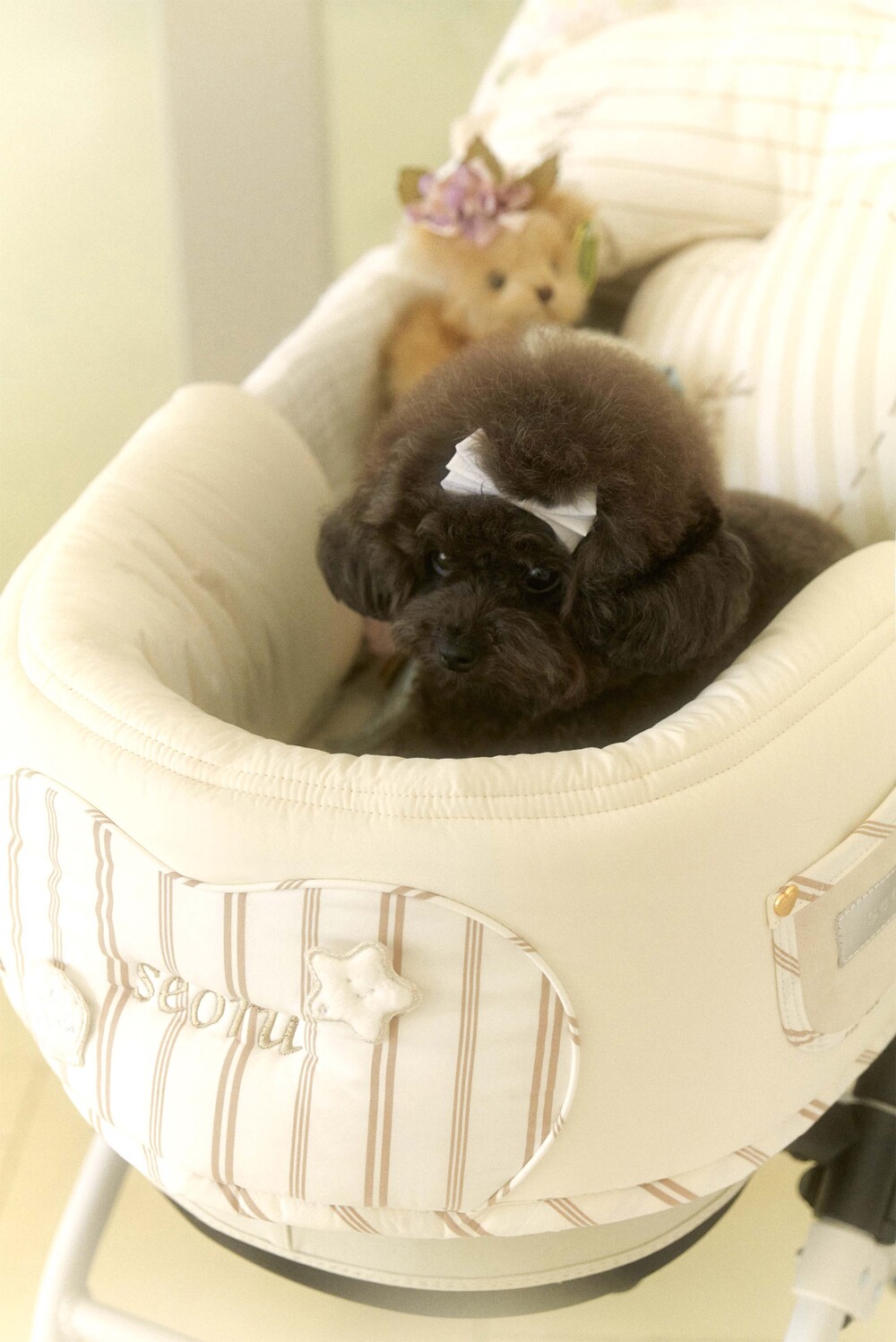 Seoru sweet home! 세심한 수작업으로 완성한 이곳저곳 멋스러운 디테일이 돋보이는, 서루의 하우스 버기 가드(House Buggy Guard)입니다. 서루의 하우스 버기가드는 아이들이 유모차 내부에 머무는 시간이 기분 좋은 외출경험이 될 수 있도록, 몸이 닿는 부분에는 부드러운 촉감을 위한 고밀도 원단을 사용하고, 하트쉐입을 채운 포인트원단에는 KUWAMURA사와 ICHIMEN사의 고급 스트라이프 패브릭을 사용했습니다. 또한 내부에는 여러 번 샘플링을 통해 선택한 보강재를 레이어링 하여 아이들이 오랜 시간 머물기 좋게끔 견고한 만듦새로 완성되었습니다.