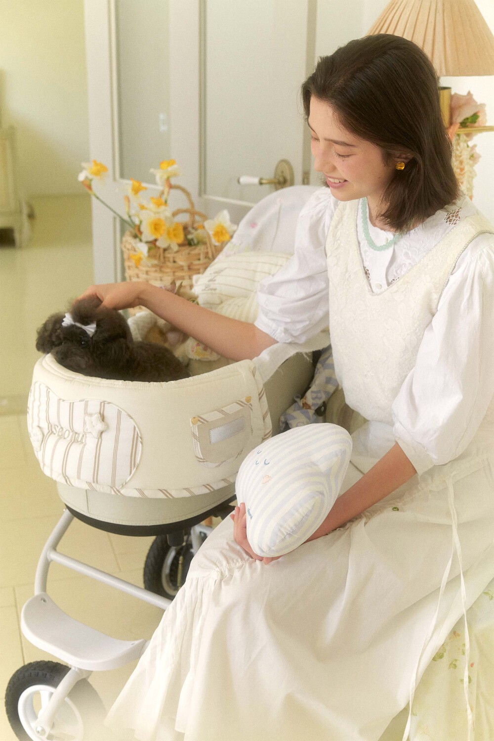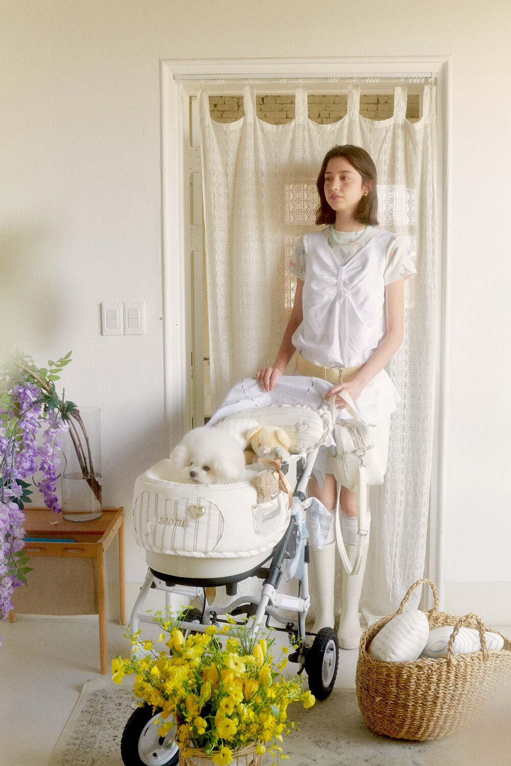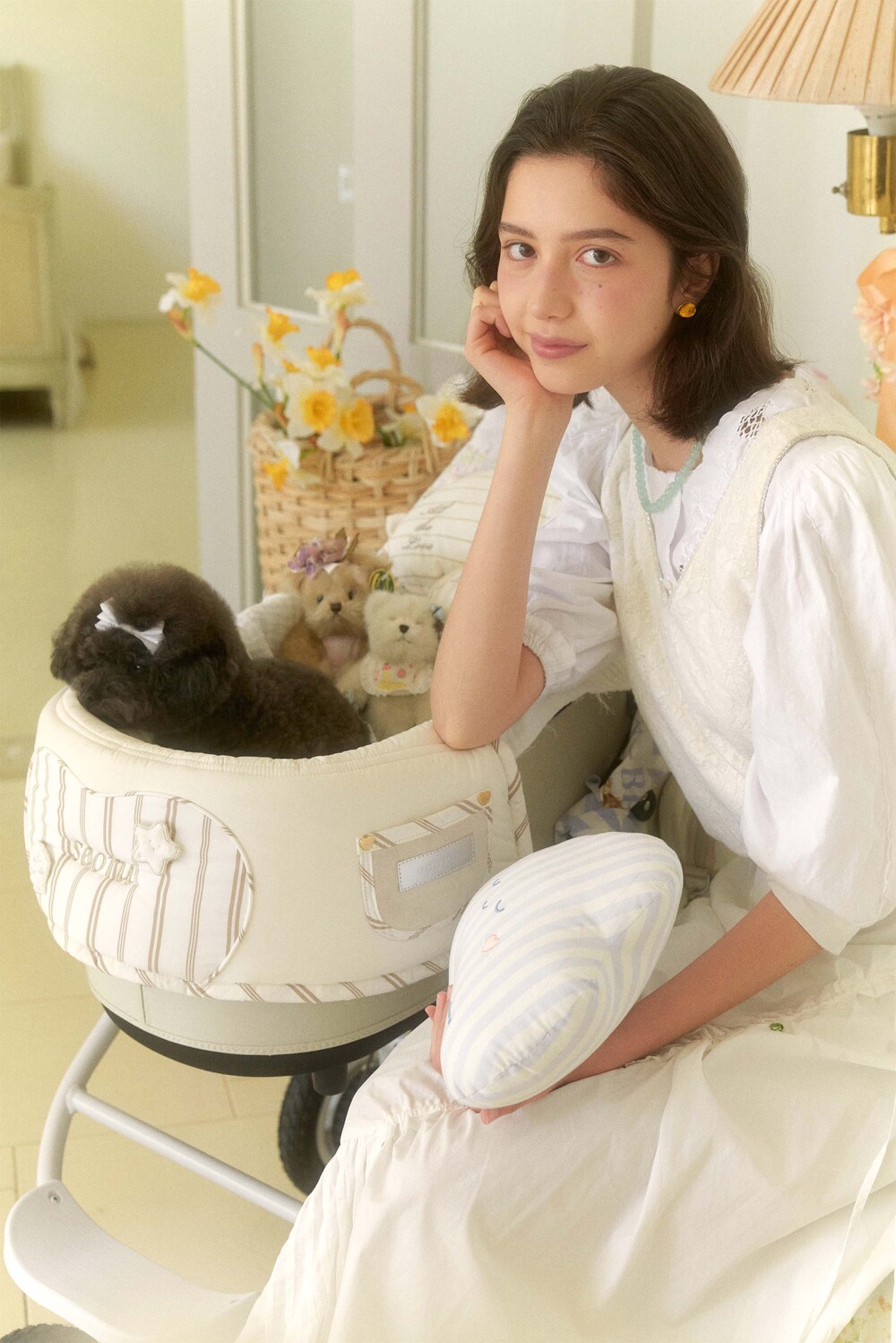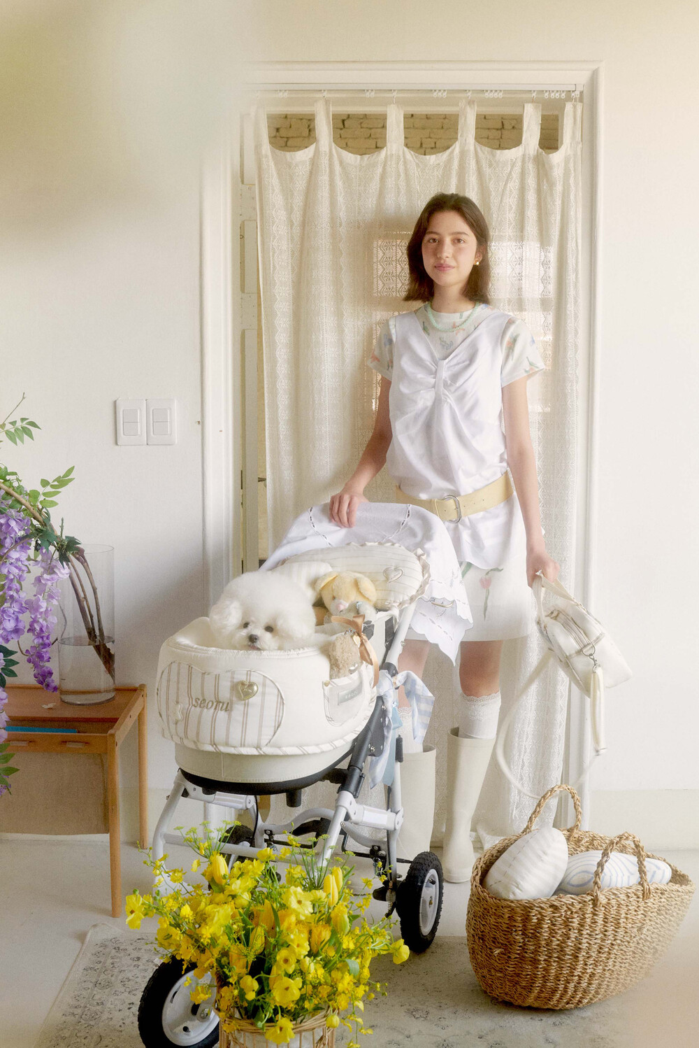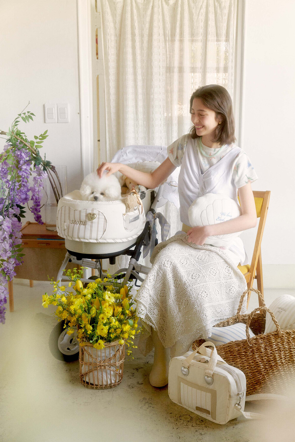 Seoru sweet home! 세심한 수작업으로 완성한 이곳저곳 멋스러운 디테일이 돋보이는, 서루의 하우스 버기 가드(House Buggy Guard)입니다. 서루의 하우스 버기가드는 아이들이 유모차 내부에 머무는 시간이 기분 좋은 외출경험이 될 수 있도록, 몸이 닿는 부분에는 부드러운 촉감을 위한 고밀도 원단을 사용하고, 하트쉐입을 채운 포인트원단에는 KUWAMURA사와 ICHIMEN사의 고급 스트라이프 패브릭을 사용했습니다. 또한 내부에는 여러 번 샘플링을 통해 선택한 보강재를 레이어링 하여 아이들이 오랜 시간 머물기 좋게끔 견고한 만듦새로 완성되었습니다.
