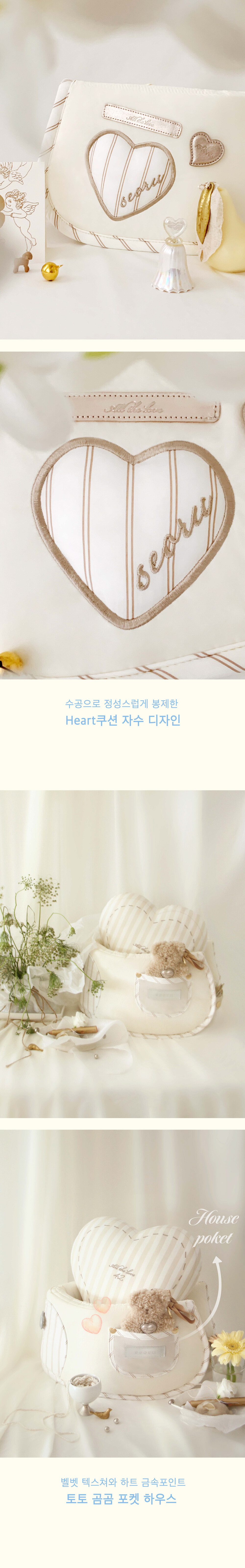 버기가드 왼편에는 수공으로 정성스럽게 봉제한 Heart쿠션 아플리케 자수 디자인, 오른편에는 벨벳 텍스쳐와 하트 금속포인트가 돋보이는 토토 곰곰 포켓하우스가 장식되어 있으며 단 하나뿐인 우리 아이 이름을 자수로 새겨 넣을 수 있어 더욱 특별한 버기가드를 선물 받아 보실 수 있습니다. 기분 좋은 컬러와 디자인으로 산뜻한 산책길에 함께하는 하우스 버기 가드는 (Blue, Pink, Beige)의 3가지 색상으로 만나보실 수 있습니다.