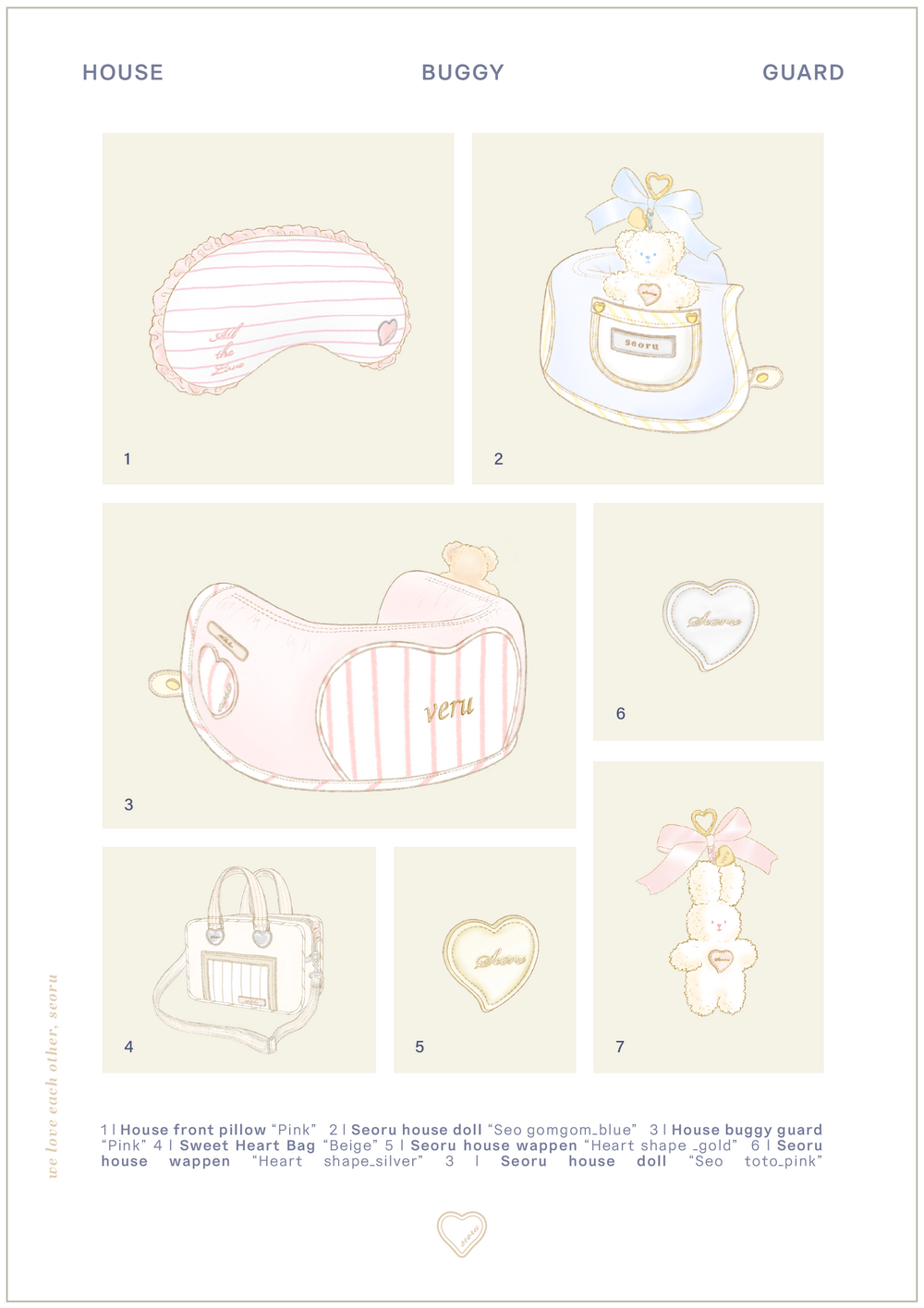 외출길 유모차공간, 포근하지만 단단한 쿠셔닝으로 아이들을 보호해주는 서루의 뉴 하우스 버기 가드(House Buggy Guard)를 소개합니다. 아이들이 유모차 내부에 머무는 시간이 즐거울 수 있도록 디자인된 서루의 버기가드는 아이들 몸이 닿는 부분에는 드러운 촉감을 위하여 방수기능이 있는 고밀도 원단을 사용하고, 전면의 하트쉐입과 사랑스러운 하우스 쿠션 디자인에는 일본 SHIBAYA사의 고급 포인트 원단을 사용했습니다. 또한 내부에는 여러 번 샘플링을 통해 선택한 보강재를 레이어링 하여 아이들이 오랜 시간 머물기 좋게끔 견고한 만듦새로 완성되었습니다.