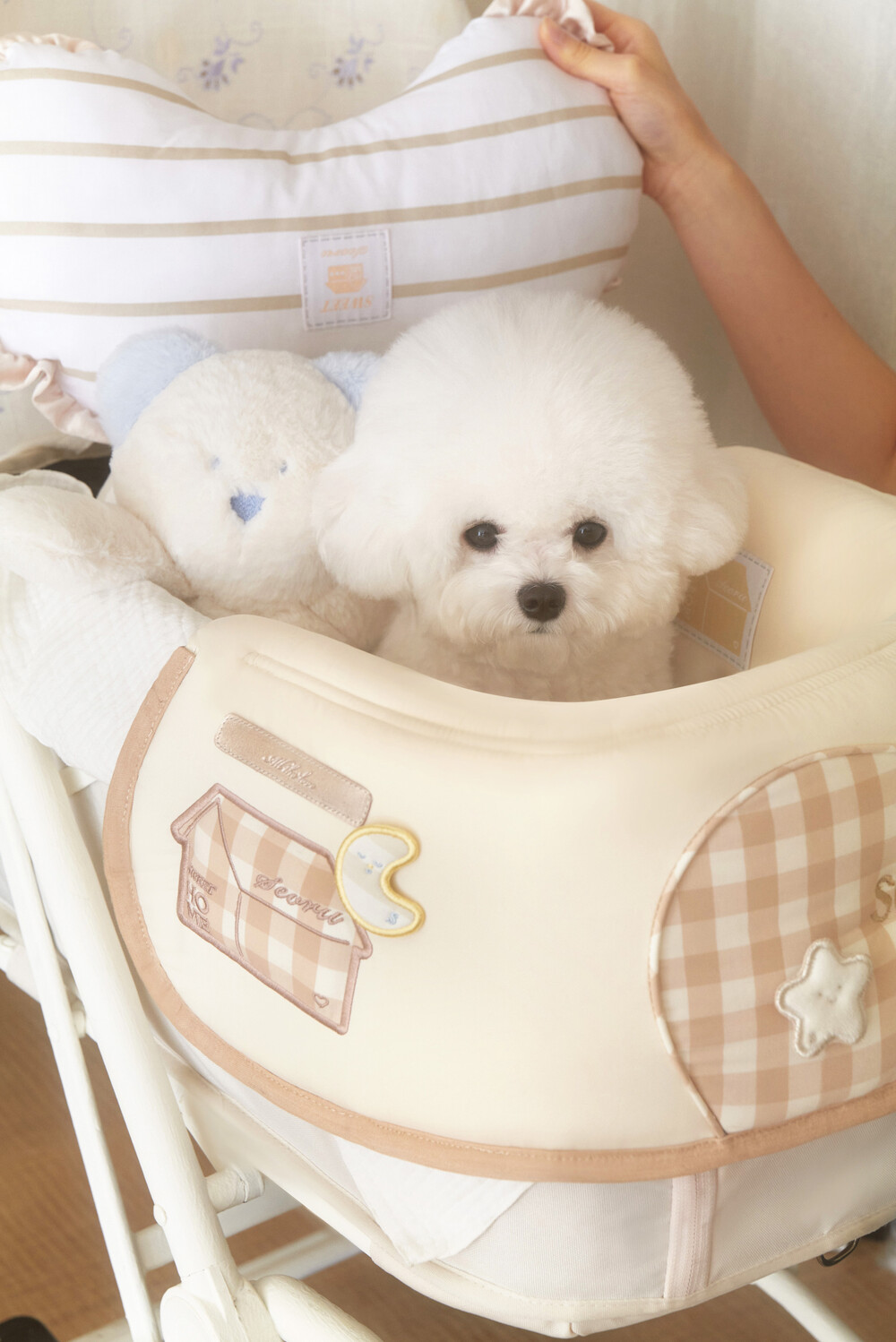 버기가드 왼편에는 수공으로 정성스럽게 봉제한 HOUSE쿠션 아플리케 자수 디자인, 오른편에는 하트 금속포인트가 돋보이는, 포켓커버가 더해져 리뉴얼된 토토 곰곰 포켓하우스가 장식되어 있습니다. 단 하나뿐인 우리 아이 이름을 자수로 새겨 넣을 수 있어 더욱 특별한 버기가드는, 실크텍스쳐 위 멋스러운 자수 디테일로 제작된 서루의 파우치와 함께 포장되어 선물 받아 보실 수 있습니다. 기분 좋은 컬러와 디자인으로 산뜻한 산책길에 함께하는 뉴 하우스 버기 가드는 (Black, Beige) 두가지색상으로 만나보실 수 있습니다.