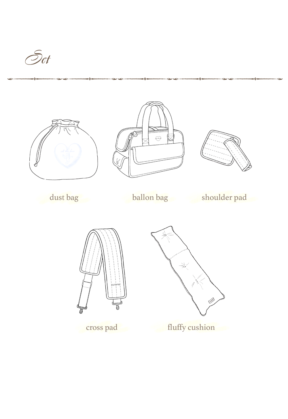 ✔︎발롱백 set구성 : (발롱백, 플러피쿠션, 숄더패드, 크로스패드, 더스트백) ✔︎발롱백 set는 세트구성상품이 전부 포함되어 있습니다 : )