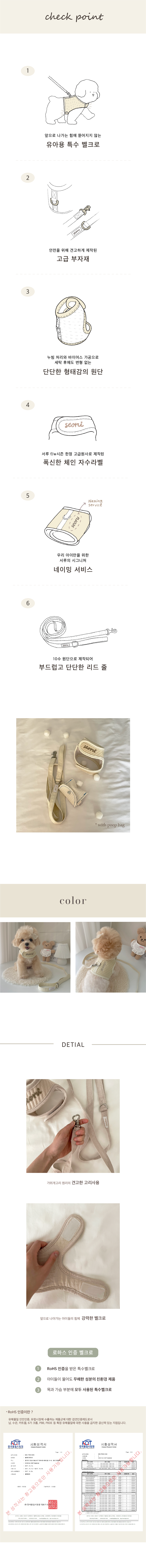 리드줄은 하네스의 곡선 부분과 같은 원단을 사용해 전체적으로 통일감을 주었으며 매트한 질감의, 사용하기 쉬운 가위개고리를 달았습니다. 아이의 이름이 자수 새겨져 더욱 귀여운 마일드 하네스를 입혀주고 아이와 같이 산책길을 즐겨보세요.🤍