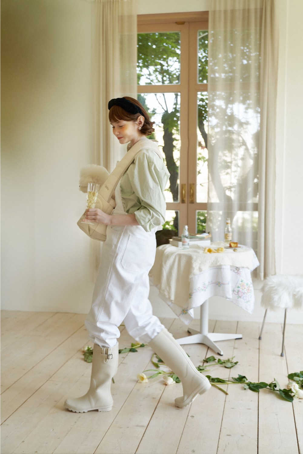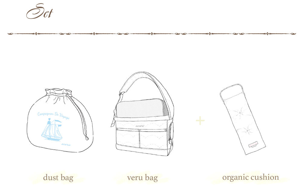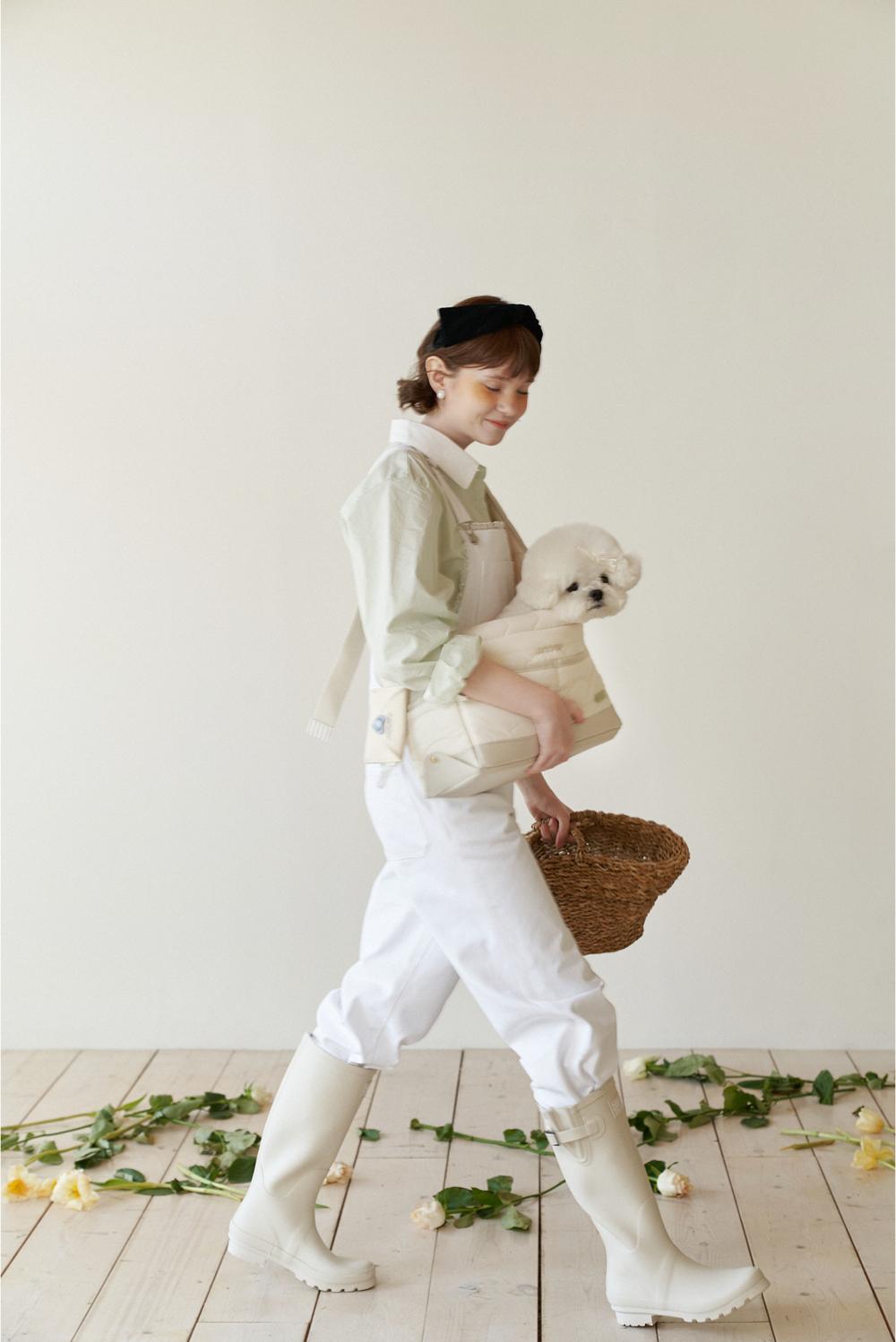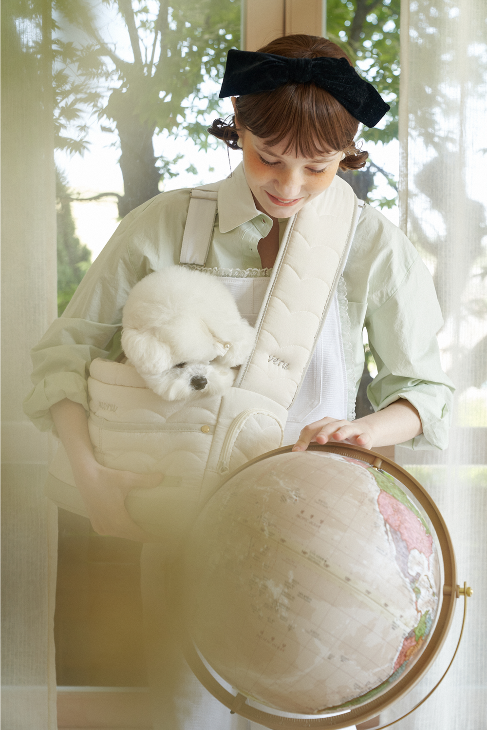 전체적으로는 차분한 모습이지만 23s/s시즌 서루의 디자인 포인트가 되어주는 동글동글 구름 누빔과 은사로 묶은 라벨, 포켓의 골드금속과 같은 디테일들이 정교하게 제작되어 고급스러움을 느끼실 수 있습니다. 또한 서루만의 시그니처 메쉬프레임 디테일과 쿠션 파이핑에는 일본 SUN WELL사의 포인트 원단을 사용하였습니다.