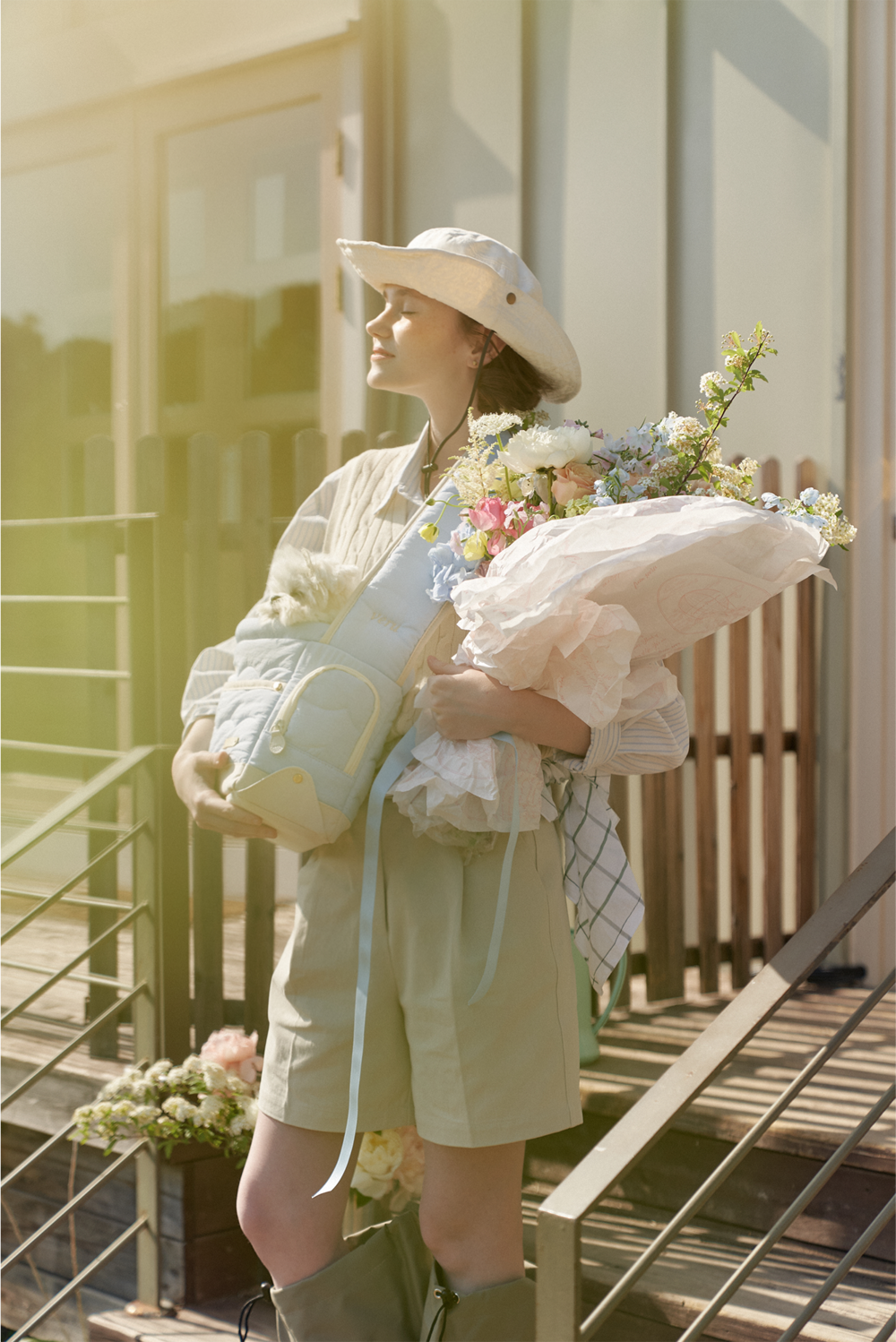 간결한 형태에 톤온톤의 색감이 무척 매력적인 23s/s 시즌 코지 베루백(Cozy veru bag)입니다. 코지 베루백은 장식의 디테일을 절제하여 어떠한 룩에도 조화롭도록 미니멀한 무드로 디자인되었습니다. 또한 코지 베루백은 메인 겉감과 내부원단에 바스락거리는 촘촘한 짜임의 방수원단을 사용하여 아이들이 시원한 촉감을 느끼고 오염으로부터 관리가 더욱 용이하게끔 제작되었습니다.