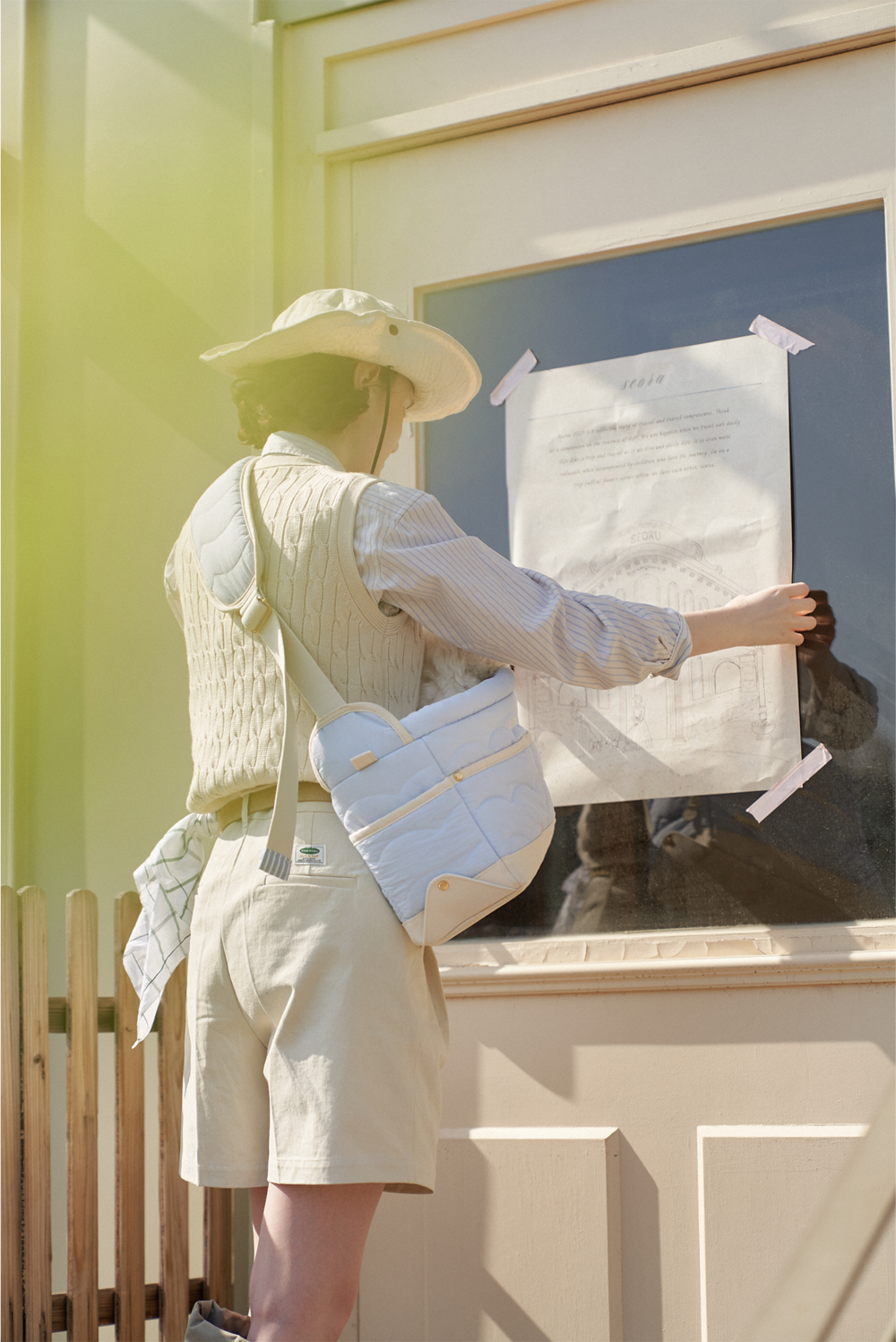 절제된 컬러팔레트에서 골라낸 색감이 기분 좋은 코지베루백(Cozy veru bag)은 2가지 색상(beige, blue)으로 출시되었습니다.